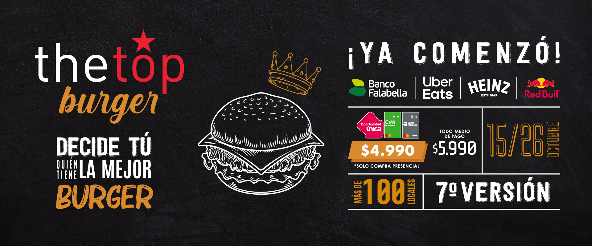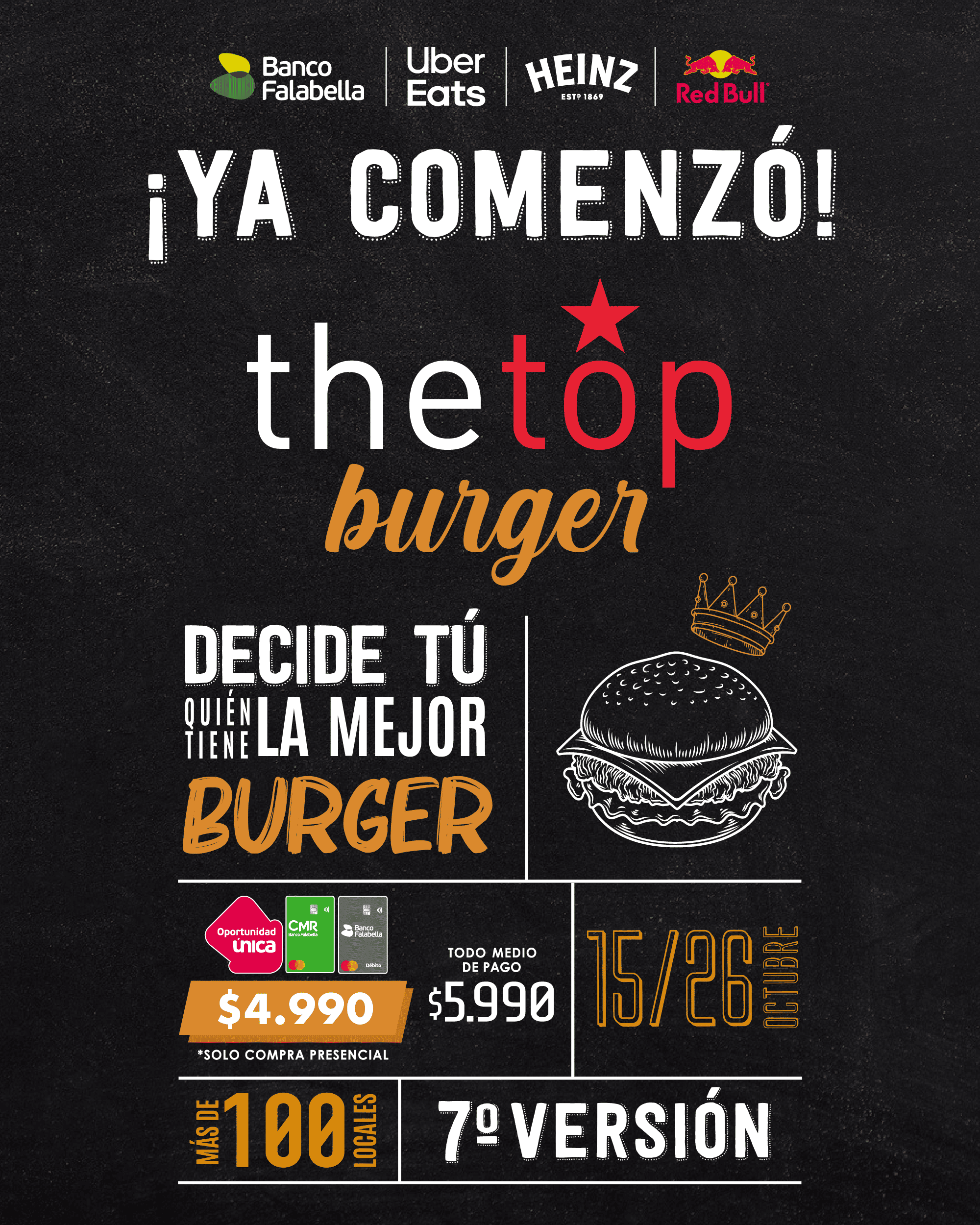 ¡Ya comenzó The Top Burger 2025 💥🔥🍔! Desde el Miércoles 15 al Domingo 26 de Octubre podremos disfrutar más de 100 tipos de #TheTopBurger 😍 a sólo $4.990c/u... sigue leyendo