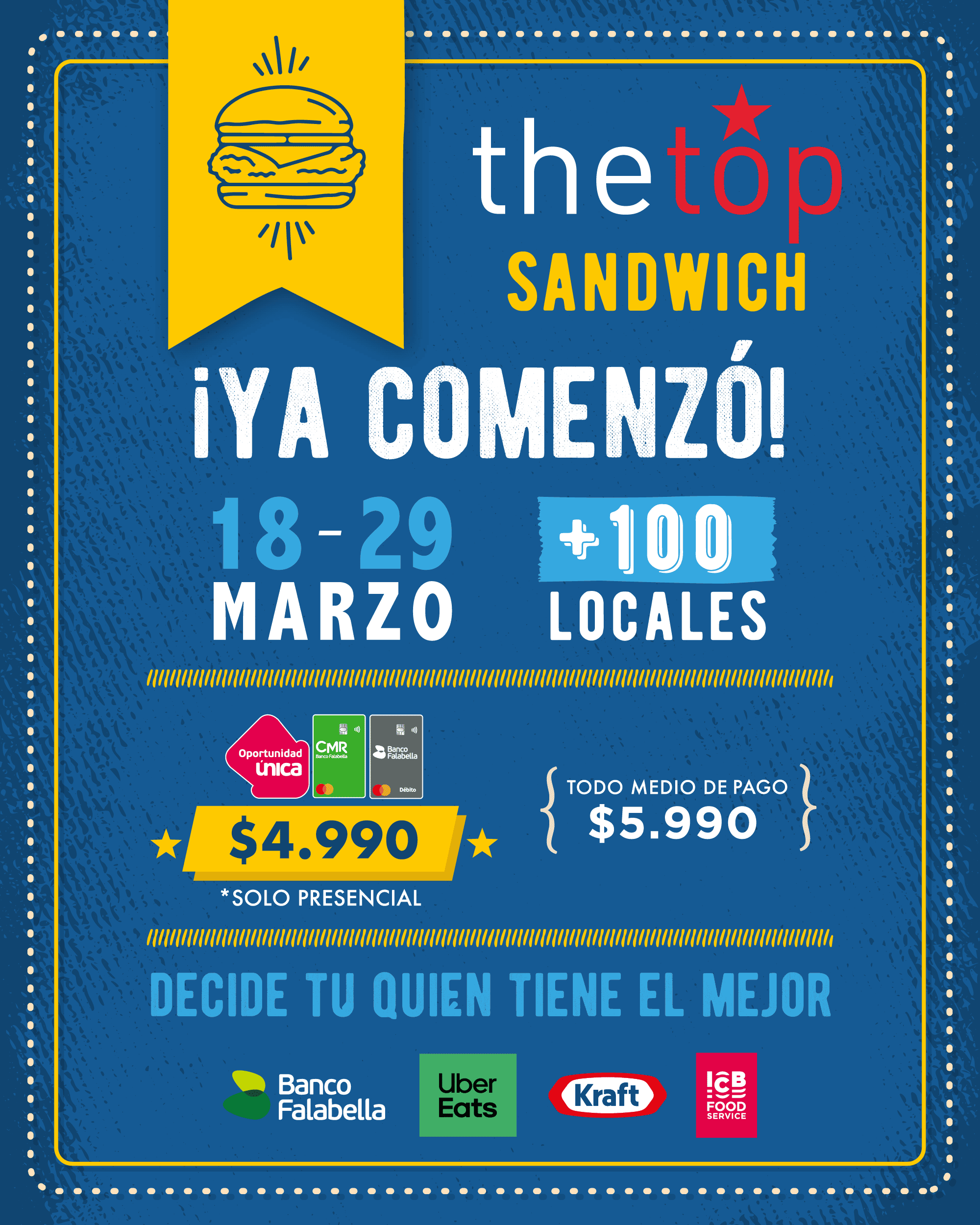 ¡Ya comenzó The Top Sandwich 2026 🥪🍔🌭🤤! Desde el miércoles 18 al 29 de marzo podremos probar +100 locales de Sandwichs 🍔 por sólo... sigue leyendo